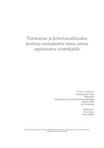 (15.12.2025)Diplomityö käsittelee toisen asteen oppilaitoksen henkilökunnalle suunnattua kyber- turvallisuuden koulutusta muuttuneessa toimintaympäristössä. Digitalisaation myötä oppilaitosten toiminta on siirtynyt yhä vahvemmin ...avoin -