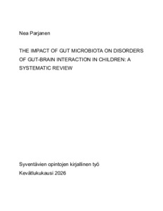 (26.01.2026)Disorders of gut-brain interaction, also known as functional gastrointestinal disorders, are common in children, but the pathophysiology is still partly unknown.These disorders affect 10-15% of children. The symptoms are ...avoin -