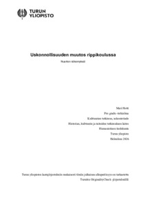 (18.02.2026)Tämän tutkielman aiheena on nuorten näkemykset rippikoulun myötä tapahtuneista muutoksista heidän omassa uskonnollisuudessaan. Muutoksia tarkastellaan Glockin ja Starkin 1960-luvulla kehittämien uskonnollisuuden ulottuvuuksien ...avoin -