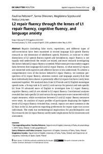 Peltonen Pauliina; Olkkonen Sanna; Magdalena Szyszka; Lintunen Pekka<p>Repairs (including false starts, repetitions, and different types of self-corrections) have been examined in second language (L2) speech fluency research as one dimension of (dis)fluent speech. However, in contrast to ... -