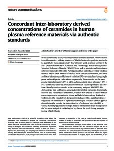 Concordant inter-laboratory derived concentrations of ceramides in human plasma reference materials via authentic standards