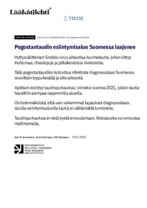 <p>• Hyttysvälitteinen Sindbis-virus aiheuttaa kuumetautia, johon liittyy ihottumaa, lihaskipuja ja pitkäkestoisia niveloireita. <br></p><p>• Tätä pogostantaudiksi kutsuttua infektiota diagnosoidaan Suomessa vuosittain ... -