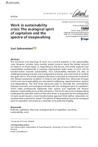Work in sustainability crisis: The ecological spirit of capitalism and the spectre of sleepwalking