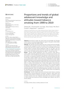 Proportions and trends of global adolescent knowledge and attitudes toward tobacco smoking from 1999 to 2019
