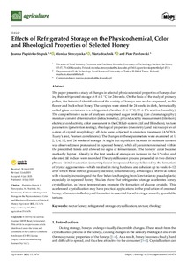 The paper presents a study of changes in selected physicochemical properties of honeys during their refrigerated storage at 8 +/- 1 degrees C for 24 weeks. On the basis of the study of primary pollen, the botanical ... -