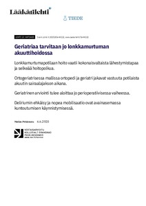 Geriatriaa tarvitaan jo lonkkamurtuman akuuttihoidossa