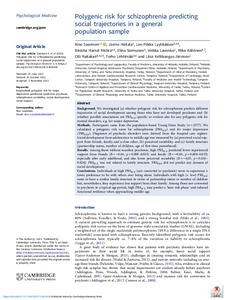 Polygenic risk for schizophrenia predicting social trajectories in a general population sample