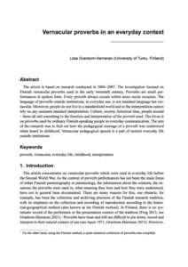 <p>The article is based on research conducted in 2004-2007. The investigation focused on Finnish vernacular proverbs used in the early twentieth century. Proverbs are small per-formances in spoken form. Every proverb always ... -
