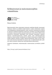<p>Maisemansuojelu kytkee materiaalisen maiseman, paikalliset yhteisöt, viranomaiset, kolmannen sektorin ja poliittiset toimijat toisiinsa. Luotaan artikkelissani suojelun monimittakaavaisia keskusteluasetelmia, joiden ... -