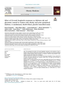 Effect of 52-week liraglutide treatment on diabetes risk and glycaemic control in women with obesity and prior gestational diabetes. A randomized, double-blind, placebo-controlled study