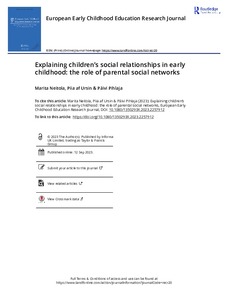 <p>In this article, we examined young Finnish children’s social relationships, characteristics of their parents’ social networks and the role of parental networks in children’s peer relationships. We drew on the data ... -