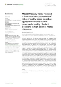 Moral Uncanny Valley revisited - how human expectations of robot morality based on robot appearance moderate the perceived morality of robot decisions in high conflict moral dilemmas