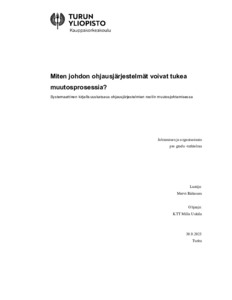 Tämän pro gradu -tutkielman tavoitteena oli selvittää, miten johdon ohjausjärjestelmät voivat tukea organisaatioita muutoksessa aina muutostarpeen tunnistamisesta sen toteuttamiseen ottaen huomioon muutoksen sosiaalisen ulottuvuuden ja työntekijöiden hyvinvoinnin. Systemaattinen kirjallisuuskatsaus perustuu 14 vertaisarvioituun artikkeliin vuosilta 2000–2025, jolloin digitaalinen murros on merkittävästi muokannut päätöksentekoa ja tiedonhallintaa. Tutkimuksessa vastattiin seuraaviin kysymyksiin: