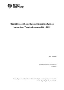 (26.02.2026)Tässä tutkimuksessa tarkasteltiin vuosina 2001-2022 Turun yliopistollisessa keskussairaalassa (Tyks) operatiivisesti hoidettuja olkavarsimurtumapotilaita ja näiden murtumien luutumista. Tutkimuksen tarkoituksena oli ...avoin -