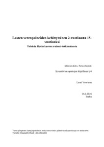 Lasten verenpaineiden kehittyminen 2-vuotiaasta 15-vuotiaaksi : Tuloksia Hyvän kasvun avaimet -tutkimuksesta