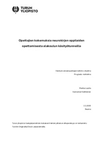 (03.03.2026)Tämän pro gradu -tutkielman tarkoituksena oli selvittää minkälaisia kokemuksia alakoulussa käsityötä opettavilla opettajilla on neurokirjon oppilaiden opettamisesta sekä heidän kokemuksiaan omista valmiuksistaan opettaa ...avoin -