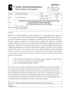 Behind the urge for mergers and acquisitions in telecommunication industry : case : Nokia Siemens Networks (NSN) merger