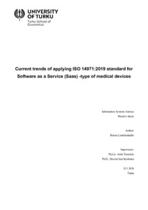 (24.03.2026)The purpose of this thesis was to research possible future trends related to implementing ISO 14971:2019 risk management standard to Software as a Service (Saas) -type of medical devices in EU area. The research study was ...avoin -