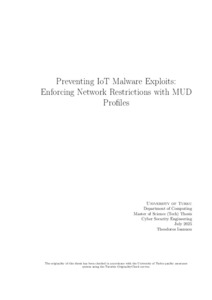 (23.07.2025)The importance of IoT devices and their relationship to network security is examined in this thesis, with particular focus placed on how Manufacturer Usage Description (MUD) profiles can be used to enhance cybersecurity. ...avoin -