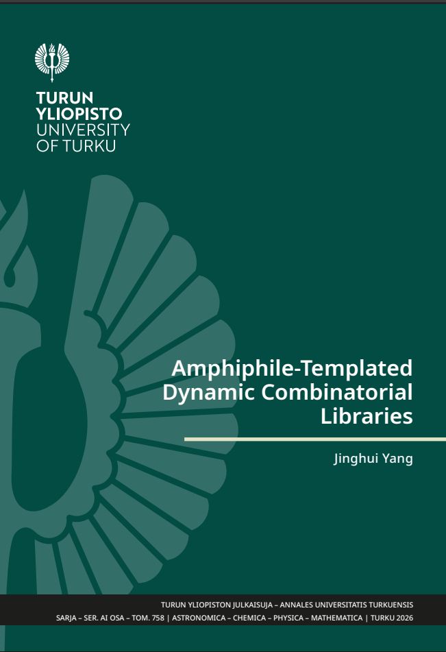 Turun yliopiston julkaisuja - Annales Universitatis Turkuensis, Ser. AI: : 758 (Turun yliopisto, 10.04.2026)This thesis investigates amphiphile-templated dynamic combinatorial libraries (DCLs) operating through reversible thiol–disulfide exchange, with the aim of elucidating how amphiphilic organization governs molecular selection, ... -