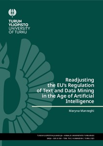 Turun yliopiston julkaisuja - Annales Universitatis Turkuensis B: Humaniora : 750 (Turun yliopisto, 28.11.2025)This doctoral dissertation examines whether the EU’s current regulation of text and data mining (TDM) adequately considers the interests and implications related to technological developments and the fundamental freedoms ... -