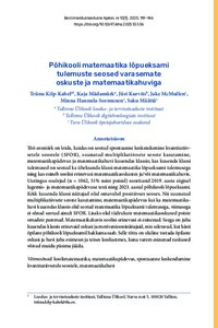 <p>Töö eesmärk on leida, kuidas on seotud spontaanne keskendumine kvantitatiivsetele seostele (SFOR), suunatud multiplikatiivsete seoste kasutamine, matemaatikapädevus ja matemaatikahuvi kuuendas klassis; kas kuuenda klassi ... -