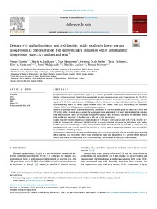 Dietary n-3 alpha-linolenic and n-6 linoleic acids modestly lower serum lipoprotein(a) concentration but differentially influence other atherogenic lipoprotein traits : a randomized trial
