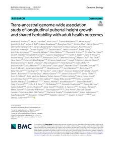 Trans-ancestral genome-wide association study of longitudinal pubertal height growth and shared heritability with adult health outcomes