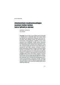 <div>Suomen kielen aseman heikkenemisestä yliopistolla ja yhteiskunnassa on keskusteltu paljon viime aikoina. Joskus jopa oletetaan, ettei akateemisessa maailmassa enää tarvita suomen kieltä. Tässä artikkelissa tuodaan ... -