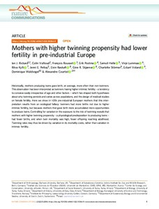 Mothers with higher twinning propensity had lower fertility in pre-industrial Europe