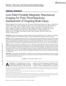 <p>BACKGROUND: Timely imaging is essential for patients undergoing mechanical thrombectomy (MT). Our objective was to evaluate the safety and feasibility of low-field portable magnetic resonance imaging (pMRI) for bedside ...