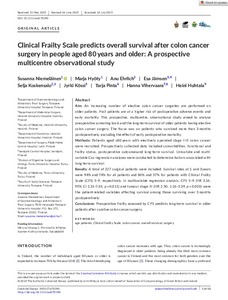 <p><b>Aim</b><br>An increasing number of elective colon cancer surgeries are performed on older patients. Frail patients are at a higher risk of postoperative adverse events and early mortality. This prospective, multicentre, ... -