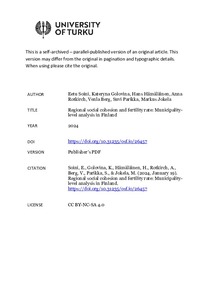 Regional social cohesion and fertility rate: Municipality-level analysis in Finland