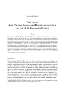 Ecce novus: Saint Thomas Aquinas and Dominican Identity at the End of the Fourteenth Century