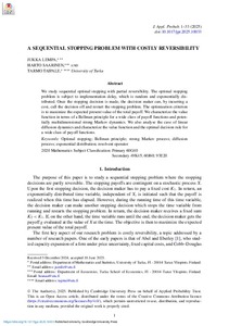 <p>We study sequential optimal stopping with partial reversibility. The optimal stopping problem is subject to implementation delay, which is random and exponentially distributed. Once the stopping decision is made, the ... -