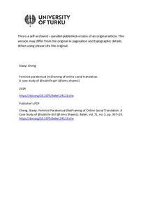 <p>This study focuses on a range of paratexts around an influential social media account in China named @subtitle girl, who dedicates herself to online feminist content production in the form of (editing) and subtitling ... -