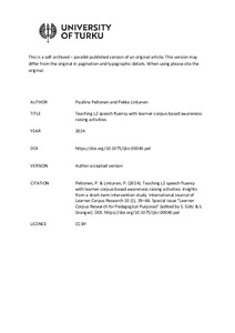 Teaching L2 speech fluency with learner-corpus-based awareness-raising activities
