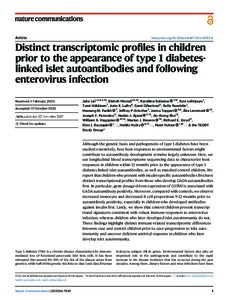Distinct transcriptomic profiles in children prior to the appearance of type 1 diabetes-linked islet autoantibodies and following enterovirus infection