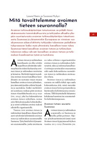 <p>Avoimien tutkimuskäytäntöjen toteutuminen on pitkälti kiinni akateemisesta toimintakulttuurista ja tutkijoiden alhaalta ylöspäin suuntautuvasta avoimien tutkimuskäytäntöjen toteuttami-sesta. Suomessa ja yleisemminkin ... -