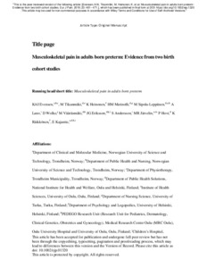 Musculoskeletal pain in adults born preterm: Evidence from two birth cohort studies