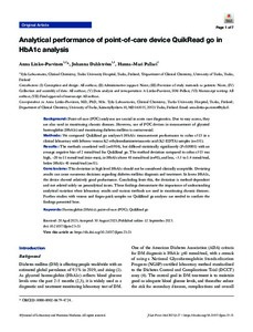 <p><strong>Background: </strong>Point-of-care (POC) analysers are crucial in acute care diagnostics. Due to easy access, they are also used in monitoring chronic diseases. However, use of POC devises in measurement of ... -