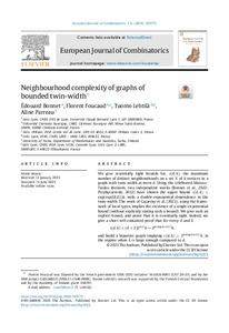 <p>We give essentially tight bounds for, <em>ν(d, k)</em>, the maximum number of distinct neighbourhoods on a set <em>X</em> of <em>k</em> vertices in a graph with twin-width at most d. Using the celebrated Marcus–Tardos ... -