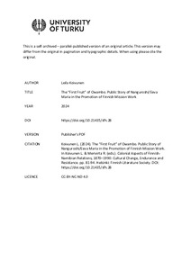 The “First Fruit” of Owambo. Public Story of Nanguroshi/Eeva Maria in the Promotion of Finnish Mission Work