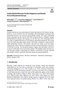 Couple relations are a key determinant of mental and physical well-being in old age. However, we do not know how the advantages and disadvantages associated with partnership histories vary between socioeconomic groups. We ... -