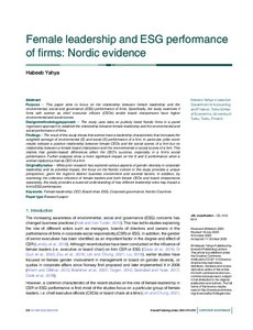 Female leadership and ESG performance of firms: Nordic evidence