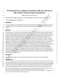 Interacting short-term regulatory mechanisms enable the conversion of light energy to chemical energy in photosynthesis