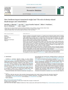 <h3>Objective</h3><p>Loneliness is increasingly recognized as a significant factor influencing health outcomes, including weight management. Nevertheless, its role in intentional weight loss remains underexplored. The ... -
