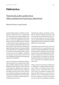 Toimituskauden päätteeksi: Näkymättömästä työstä ja yhteisöstä