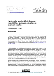 Kylmän sodan feminismiä Etelä-Koreassa: Naisasialiikkeen toimijuus ja mahdollisuudet autoritaarisena aikana.