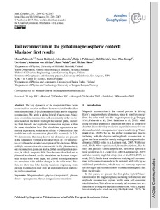 Tail reconnection in the global magnetospheric context: Vlasiator first results